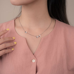 Charming and whimsical, the Butterfly Necklace adds a delicate, youthful flair to your collection with its dainty silver butterflies and classic chain.